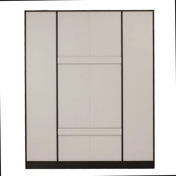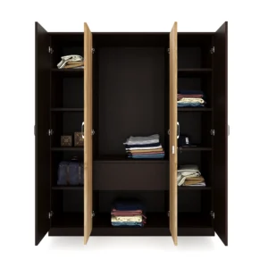 If you often find your clothes strewn around your bedroom and struggle to organise them in one place, we have just the thing to make your life easier. Willy is a no-frills, four-door wardrobe designed to keep your room from looking like a laundry room. It is well-designed to fit Indian homes, so this wardrobe can meet all of your clothing storage needs while contributing to the aesthetics of your space. With quality particleboard construction and a reliable new wenge finish, you get a solid wardrobe that can last without losing its visual appeal. It has two precision-cut mirrors placed on the front to give you a flawless reflection of yourself. The exteriors of the Willy Wardrobe also have neat handles and a safety lock, while the interiors have eleven large shelves. This well-thought-out design provides ample space for organising your dresses, trousers, and other clothes. If your bedroom is spacious enough for a four-door closet, the Willy Wardrobe is a wise choice. Get it today for a more organised and tidy home.