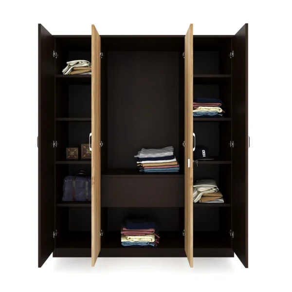 Nilkamal Willy 4 Door Mirror Wardrobe (New Wenge / Sonama Oak)