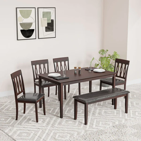 Nilkamal Olivia 6 Seater Dining Set with Bench (Brown)
