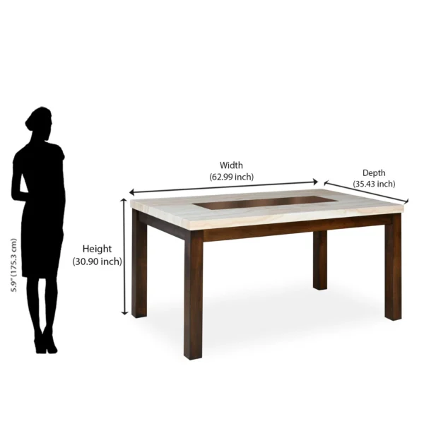 What if we told you that you could transform not only your dining experience but also the aesthetics of the dining space? A fine example of such a transformative piece of furniture is the York Dining Table from Nilkamal. It is made primarily of sturdy rubberwood and serves as a stylish dining table that enhances the welcoming appeal of your dining space. The sophisticated and dark-shaded hexagonal pattern at the centre of the tabletop, made of MDF and rubberwood veneer, stands out against the otherwise light tabletop. With the extra engineered wood support, the elegant York dining table further strengthens itself for years of comfortable use. Whether for family dinners or meals with friends, dining at this table will be one of your most memorable after-hours experiences. It also has a smooth melamine finish on the table, which improves its resistance while providing a smooth surface. York combines extraordinary strength with a classy style, giving your tasteful modern home the grace it deserves.