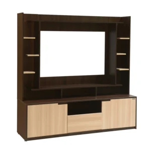 Elevate your living space with the Nilkamal Cyndy Wall Unit. Crafted from 18mm thick particle board, this wall unit boasts durability and a modern aesthetic. It has 2 shutters, 1 large drawer, along with storage space below the TV panel, providing ample room to keep your belongings organized. With 8 shelves (4 on each side), you have plenty of space for displaying decor and essentials.